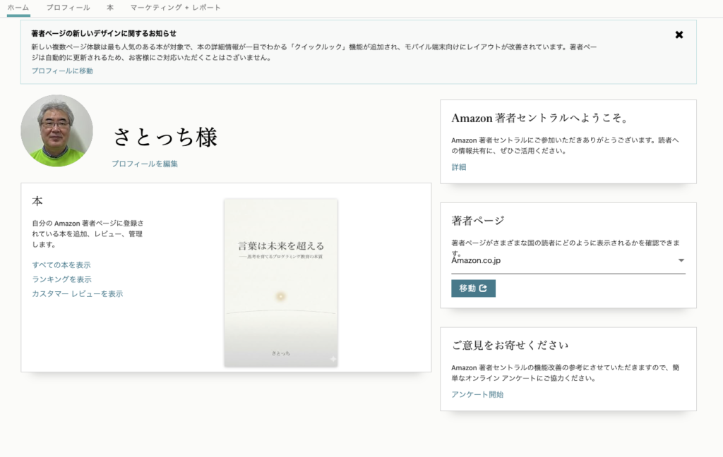 そう思ったのも束の間。本当の意味で私が立ち止まったのは、その直後のことでした。 次に進むよう促されたのが、「Amazon 著者セントラル」への登録です。